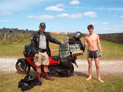 Mike, og hans trademark: En overlæsset Honda. (Der kommer 2 mand på senere.)